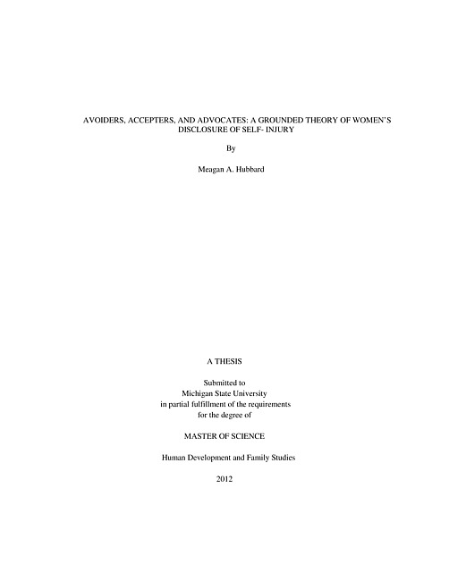 Avoiders, accepters, and advocates : a grounded theory of women's disclosure of self- injury