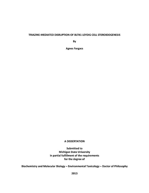 Triazine-mediated disruption of BLTK1 Leydig cell steroidogenesis