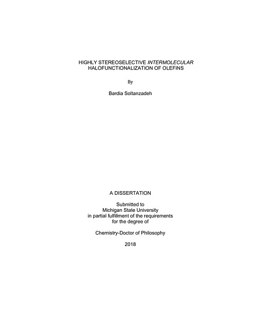 HIGHLY STEREOSELECTIVE INTERMOLECULAR HALOFUNCTIONALIZATION OF OLEFINS