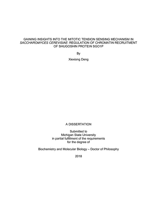 Gaining insights Into the mitotic tension sensing mechanism in Saccharomyces cerevisiae : regulation of chromatin recruitment of Shugoshin protein SGO1P
