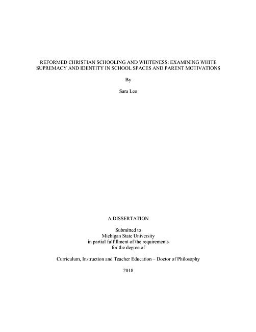 Reformed Christian schooling and whiteness : examining white supremacy and identity in school spaces and parent motivations