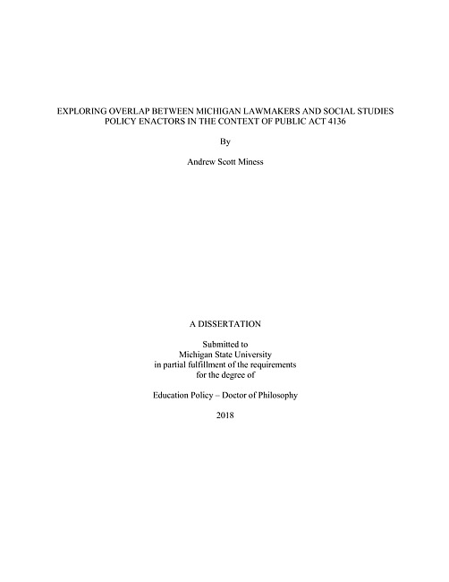 Exploring overlap between Michigan lawmakers and social studies policy enactors in the context of Public Act 4136