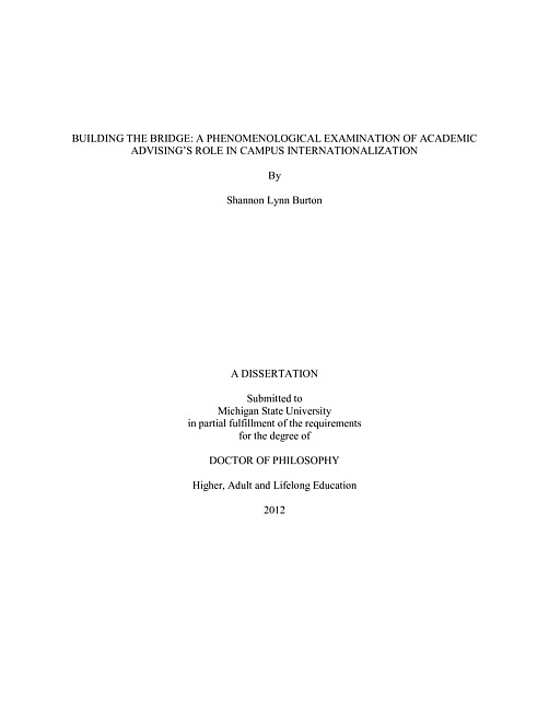 Building the bridge : a phenomenological examination of academic advising's role in campus internationalization