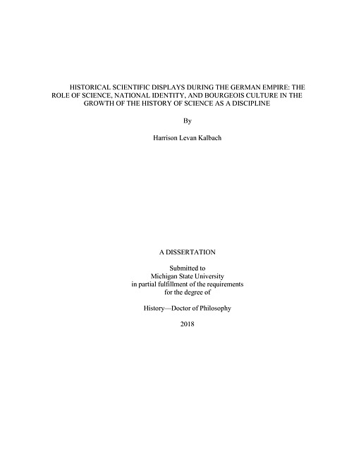 Historical scientific displays during the German Empire : the role of science, national identity, and bourgeois culture in the growth of the history of science as a discipline