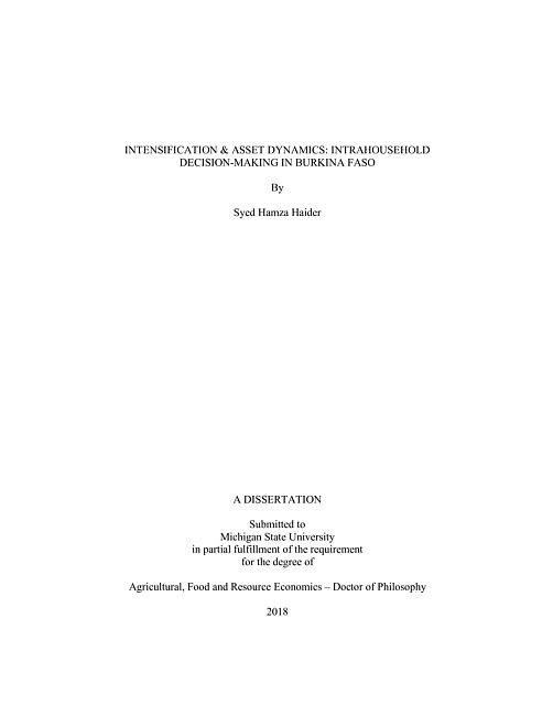 Intensification & asset dynamics : intrahousehold decision-making in Burkina Faso