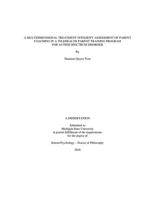 A multidimensional treatment integrity assessment of parent coaching in a telehealth parent training program for autism spectrum disorder