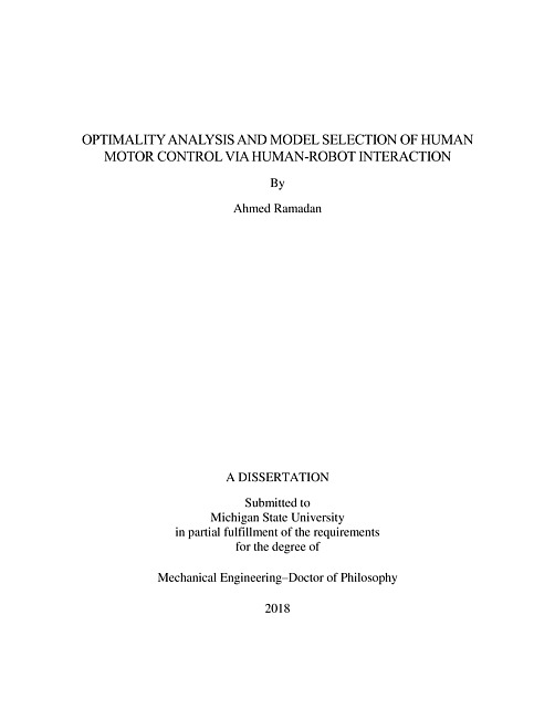 Optimality analysis and model selection of human motor control via human-robot interaction