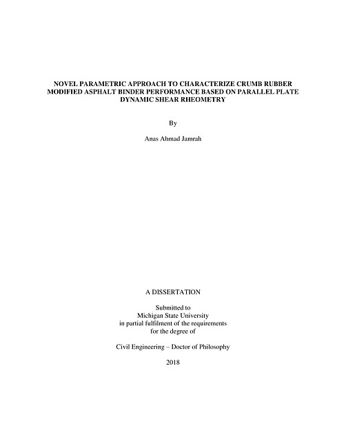 Novel parametric approach to characterize crumb rubber modified asphalt binder performance based on parallel plate dynamic shear rheometry
