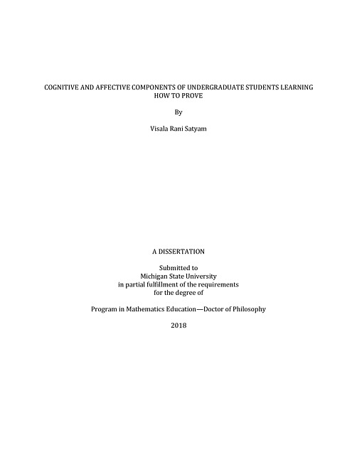 Cognitive and affective components of undergraduate students learning how to prove