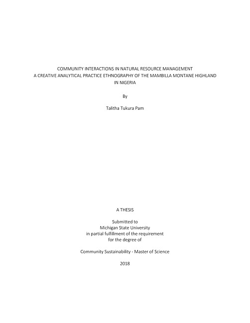Community interactions in natural resource management a creative analytical practice ethnography of the Mambilla Montane Highland in Nigeria