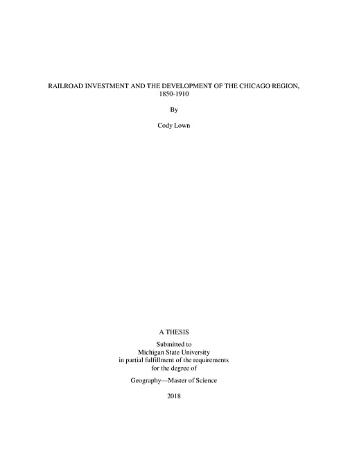 "The purpose of this study is to examine railroad and streetcar development in the city of Chicago and its periphery, covering the years 1848 to 1910. The research explores how investment in rail during this period shaped suburban development and the expansion of the city. Data collection and mapping of railroad and streetcar lines in the Chicago region over these six decades emerges as a major component of this research. "--from the abstract.