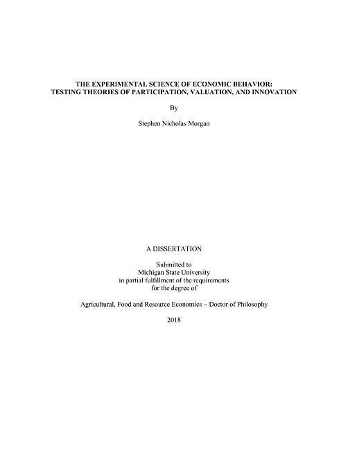 The experimental science of economic behavior : testing theories of participation, valuation, and innovation