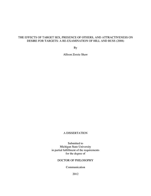 The effects of target sex, presence of others, and attractiveness on desire for targets : a re-examination of Hill and Buss (2008)