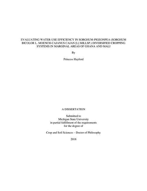 EVALUATING WATER-USE EFFICIENCY IN SORGHUM-PIGEONPEA (SORGHUM BICOLOR L. MOENCH-CAJANUS CAJAN [L] MILLSP.) DIVERSIFIED CROPPING SYSTEMS IN MARGINAL AREAS OF GHANA AND MALI
