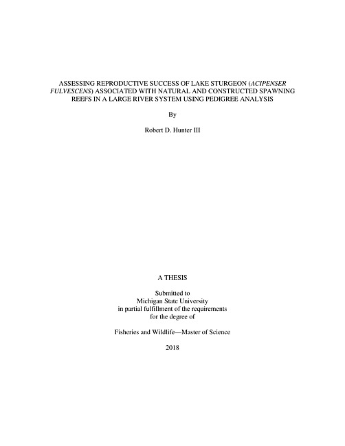 ASSESSING REPRODUCTIVE SUCCESS OF LAKE STURGEON (ACIPENSER FULVESCENS) ASSOCIATED WITH NATURAL AND CONSTRUCTED SPAWNING REEFS IN A LARGE RIVER SYSTEM USING PEDIGREE ANALYSIS