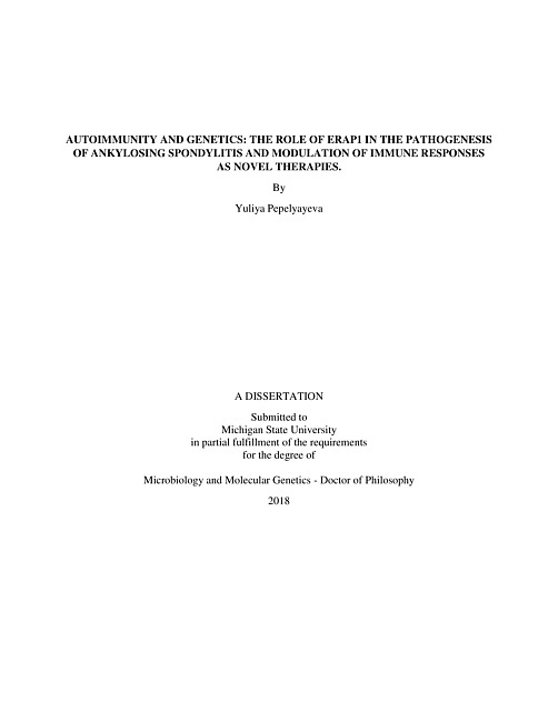 AUTOIMMUNITY AND GENETICS : THE ROLE OF ERAP1 IN THE PATHOGENESIS OF ANKYLOSING SPONDYLITIS AND MODULATION OF IMMUNE RESPONSES AS NOVEL THERAPIES