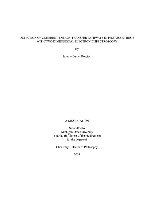 DETECTION OF COHERENT ENERGY TRANSFER PATHWAYS IN PHOTOSYNTHESIS WITH TWO-DIMENSIONAL ELECTRONIC SPECTROSCOPY