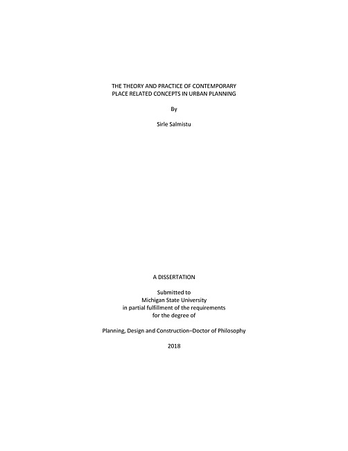Since the 1990s, planning theory has focused on the planning process and the engagement of stakeholders. With increasing technologies, attitudinal changes and transformations in lifestyles, new concepts and themes in planning profession seem to emerge at increasing frequencies. Most appear to evolve over a set of good planning principles that have withstood the test of time. Contemporary concepts usually have trendy labels such as New Urbanism, Livable Communities, Sustainable Cities, Smart Cities, Cool Cities and the latest trend of Placemaking. The overarching question that guides this research is what draws planners to continually redefine and market an age-old, fundamentally basic, concept of creating safe, comfortable and attractive places for people?The purpose of this research is to explore and understand the key characteristics of contemporary concepts in urban planning, through the lens of scholarship and theoretical literature and assess whether these concepts are impacting professional planning practice in Michigan. Hence, this dissertation explored answers to the following research questions: 1) How has professional language related to creating places for people evolved since 1990? 2) To what extent do emerging concepts in Urban Planning differ from one another? 3) What planning principles are targeted through contemporary planning concepts? 4) How often do practicing urban planners in Michigan use planning principles and contemporary concepts in their day to day work? and 5) Is there a gap between theory, as evidenced by the knowledge in scholarly literature, and practice within a Michigan context, as it relates to contemporary planning concepts? Methodology of grounded theory guided this research and qualitative research methods were employed. Content analysis of selected scholarly literature and a survey of practicing urban planners were conducted.Ten significant contemporary planning concepts were identified and explored within this study: Creative Cities, Healthy Cities, Livable Cities, New Urbanism, Placemaking, Resilient Cities, Safe Cities, Smart Cities, Smart Growth and Sustainable Cities. The findings from literature analysis demonstrate that each concept has different focus areas and nuances, however, there are also considerable similarities between concepts. A set of 20 planning principles were derived from the scholarly literature on the 10 contemporary concepts. The most pertinent planning principles are related to accessibility, transportation and mobility; citizen participation and collaboration; and green infrastructure. The survey of professional planners, on the other hand, revealed that the principles most often used in practice were considerably different. Only the principle of citizen participation and collaboration overlapped between theory and practice. The other most frequently used planning principles in practice are facilitation of public education and awareness, interdisciplinary collaboration and public-private partnerships and data driven planning. The survey of professionals also showed that the most frequently used contemporary concept is Placemaking, while some of the other popular concepts were Livable Cities, Sustainable Cities and Smart Growth. The gap between theory and practice is best illustrated by the fact that the planning principles most often used by practitioners were related to the least used concepts in practice, or the principles embodied in the most often used concepts were not cited as the most frequently used principles in practice. This suggests that practitioners may use the trendy concept label with little understanding of the premise or principles related to that particular concept. Interestingly, practitioners use planning principles far more frequently in describing their work than popular contemporary concepts. Furthermore, this research proves that the continuous occurrence and evolution of concepts appears to be more of a theoretical exercise and it is not planning practice that is driving the creation of trendy concepts. This two-stage research of examining the theory behind contemporary planning concepts and the survey aimed to reflect on professional planning practice clearly demonstrates the disconnect between planning scholarship and practice.