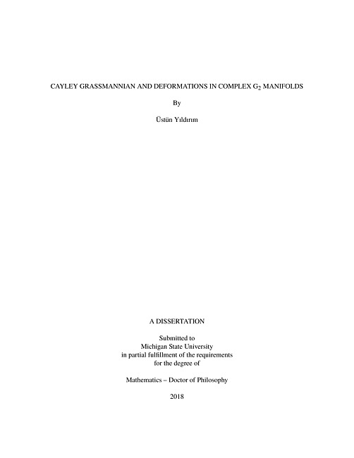 CAYLEY GRASSMANNIAN AND DEFORMATIONS IN COMPLEX G2 MANIFOLDS