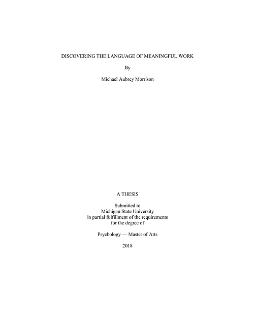 This study introduces a series of language signals that indicate whether a person finds their work meaningful (or meaningless). These signals are then integrated into a new, natural language measure of work meaningfulness. This algorithm can analyze a worker’s written description of their work, and using features of their writing determine whether they find their work meaningful with an average classification accuracy of 85%. As an additional, theoretical contribution, this study tests the relationship between work meaningfulness and construal level theory. Results indicate that personal pronouns and action verbs are most related to creating an impression of meaningfulness, but that identity statements and positive sentiment are more related to actual, self-reported meaningfulness. Additionally, construal level showed a significant, positive relationship with several measures of work meaningfulness.