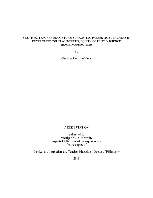Youth as Teacher Educators : Supporting Preservice Teachers in Developing Youth-Centered, Equity-Oriented Science Teaching Practices