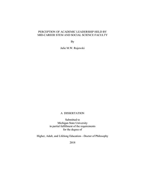 PERCEPTION OF ACADEMIC LEADERSHIP HELD BY MID-CAREER STEM AND SOCIAL SCIENCE FACULTY