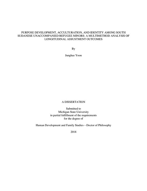 PURPOSE DEVELOPMENT, ACCULTURATION, AND IDENTITY AMONG SOUTH SUDANESE UNACCOMPANIED REFUGEE MINORS : A MULTIMETHOD ANALYSIS OF LONGITUDINAL ADJUSTMENT OUTCOMES