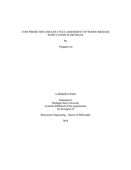 Cost Prediction and Life Cycle Assessment of Woody Biomass Supply-Chain in Michigan