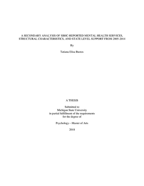 A SECONDARY ANALYSIS OF SBHC-REPORTED MENTAL HEALTH SERVICES, STRUCTURAL CHARACTERISTICS, AND STATE LEVEL SUPPORT FROM 2005-2014