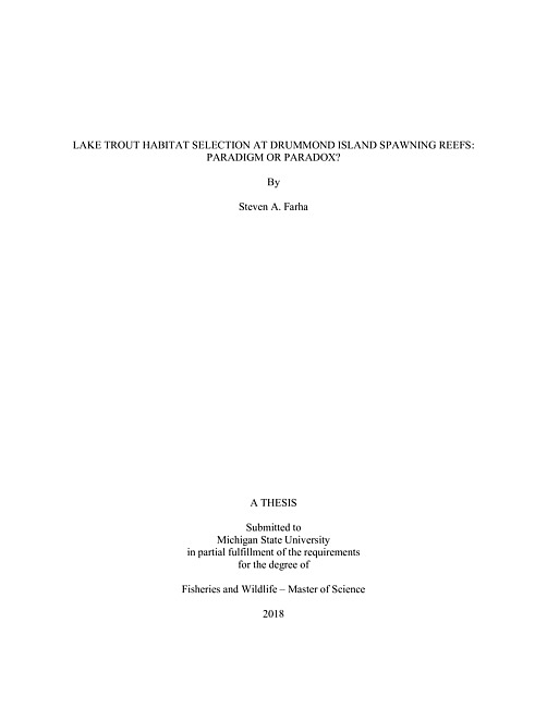 LAKE TROUT HABITAT SELECTION AT DRUMMOND ISLAND SPAWNING REEFS : PARADIGM OR PARADOX?