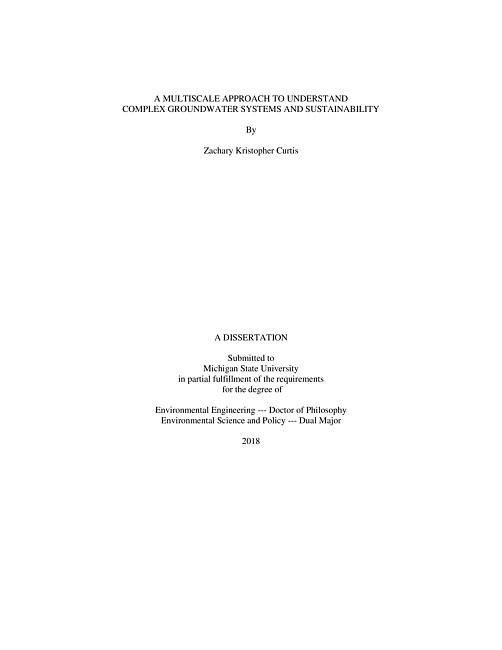 Sustainable groundwater use is a growing and relatively ubiquitous concern. Yet, managing groundwater sustainably remains a significant societal challenge, largely because management must address a variety of issues across a multitude of scales. With rare exceptions, groundwater investigations have allocated limited resources to a narrow range of scales, in many cases ignoring important process interactions. Local-scale management is often done without proper understanding of the larger system controls, while system-based studies may not be sufficiently supplemented by subscale data collection and analysis, making it difficult to provide concrete, site-specific recommendations for management. This dissertation addresses a concrete example of a complex multiscale sustainability problem, namely, widespread salinization of shallow groundwater in southern Michigan, U.S.A, which appears to be due to natural basin-scale upwelling of deep brines, but is complicated by regional and local-scale human activities (e.g., pumping, road salting and land development). An integrated, end-to-end approach is developed and applied to investigate the complex interplay of upwelling brines, human activity, and climate variability at and across vastly disparate scales. Included are perspectives of basin-scale contamination, regional groundwater-surface water connections, local human-environment interactions, and well-scale analysis of water availability (quantity and quality). Data of different types, qualities, and resolutions/coverages (most of which are pre-existing and ‘big’) are integrated and critically evaluated with various modeling tools (data-driven, process-based and analytical solutions) to understand complex system dynamics and provide a basis for strategic regional planning, local operational management, and site-specific problem-solving. Data-driven approaches are used to characterize spatial patterns and temporal trends and provide diagnostic screening of different groundwater environments across multiple scales. Regional and local-scale process-based flow simulations are used to describe and quantify the relative importance of different processes controlling groundwater sustainability, and to estimate future groundwater conditions by integrating detailed county-and township-level projections of water use and land use into model development. Through this integrated, multi-scale and multi-perspective analysis, several key scientific conclusions emerge: 1) slow, natural upwelling of brines is the dominant source of shallow saline groundwater in low-lying discharge areas across southern Michigan; 2) locally, impacts of brines are most severe where relatively continuous confining materials occur near or at the surface (precluding freshwater recharge as a freshwater flushing mechanism) and where groundwater levels are low; 3) cumulative impacts of gradual (multi-decadal) but significant increases in distributed water well networks have caused large declines (>15 m) in groundwater levels across broad subregions, which in turn is inducing movement of brine-influenced groundwater into areas historically less/not affected and worsening the severity and extent of shallow groundwater salinization; and 4) impacted aquifer systems will begin to stabilize as the rate of increase in pumping slows down, but local groundwater availability will still be limited by acceptable water quality of the user and/or required yield. The multi-scale, big data-enabled approach applied here provides a generalized framework for developing holistic understanding of groundwater systems important to sustainability, and for prioritizing limited resources needed for analysis in key areas to inform subregional and local-scale resource management.