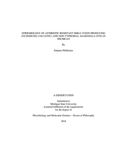 EPIDEMIOLOGY OF ANTIBIOTIC RESISTANT SHIGA TOXIN-PRODUCING ESCHERICHIA COLI (STEC) AND NON-TYPHOIDAL SALMONELLA (NTS) IN MICHIGAN