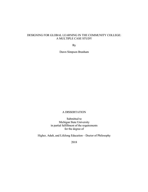 Internationalization, the process of adding an international or intercultural dimension to various aspects of higher education, has become a growing imperative for higher education institutions (HEIs) within the United States and worldwide. Once the domain of research-intensive universities and private liberal arts colleges, the internationalization imperative now expands to every type of HEI, including community colleges and other broad-access institutions (Green, 2007; Raby & Valeau, 2016; Yemini et al., 2015). Community colleges, a unique sector of higher education that serves close to 50% of all undergraduate students in the United States, face increasing pressure to internationalize from professional organizations and from scholars of higher education (Harder, 2010; Opp & Gosetti, 2014; Raby, 2007). However, internationalization in the community college sector continues to lag behind other sectors of higher education.Several possible reasons exist for the lag in internationalization, including a persistent belief that global is the opposite of local, and thus in direct contrast to the primary mission of the community college to serve the local community (Raby & Valeau, 2016). Advocacy efforts to increase internationalization of community colleges continue to rely on rationales that were developed in the context of research universities (Raby & Valeau, 2016). Thus, the purpose of this study was to gain a better understanding of the rationales guiding current, successful, global education initiatives at community colleges and the role of local context in the development of those rationales.I conducted a multi-site case study of two different community colleges with active, campus-based global education programs. I interviewed 24 faculty and staff members and analyzed documents related to global education initiatives on each campus. Key findings from the study indicate that rationales for global education in community colleges fall into three main categories: student-driven, institution-driven, and community-driven. Most notably, participants in this study strongly believed that global is not the opposite of local and that global education is critical to serving local communities in today’s globalized environment. Based on these findings, I offer a service-oriented framework for understanding rationales for global education in community colleges. I also offer a model that depicts the interaction of micro- and macro-rationales for global education. This model illustrates the ways that local context influences the development of rationales. Implications for practice, policy, theory, and future research are discussed with an emphasis on understanding and using local-level rationales to improve advocacy for increasing global education programming on community college campuses.