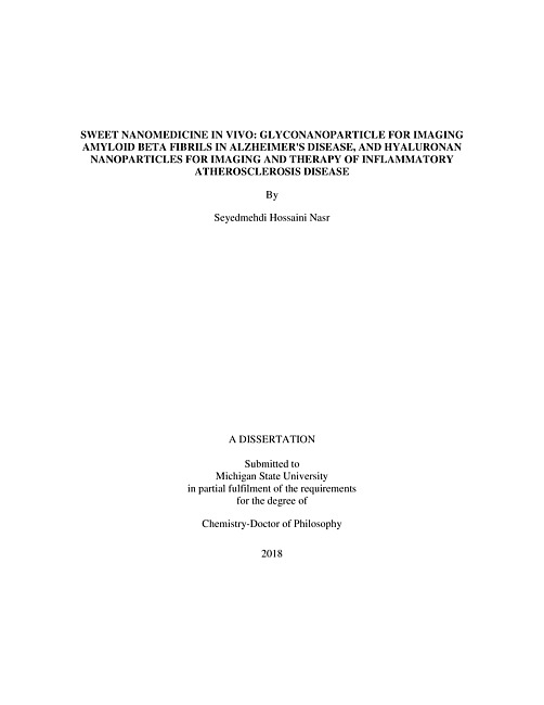 Sweet nanomedicine in vivo : glyconanoparticle for imaging amyloid beta fibrils in Alzheimer's disease, and hyaluronan nanoparticles for imaging and therapy of inflammatory Atherosclerosis disease