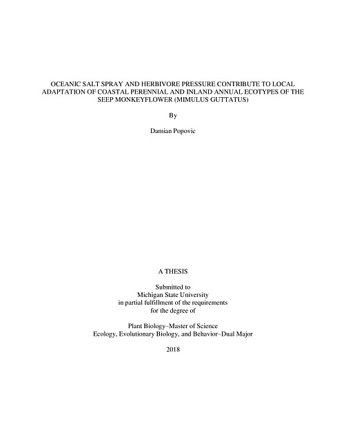 Oceanic salt spray and herbivore pressure contribute to local adaptation of coastal perennial and inland annual ecotypes of the Seep Monkeyflower (Mimulus guttatus)