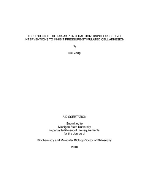 Disruption of the fak-akt1 interaction : using FAK-derived interventions to inhibit pressure-stimulated cell adhesion