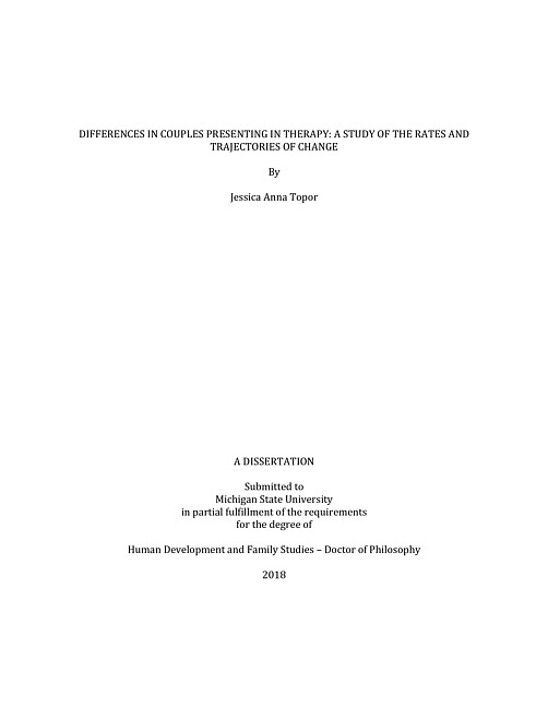 DIFFERENCES IN COUPLES PRESENTING IN THERAPY : A STUDY OF THE RATES AND TRAJECTORIES OF CHANGE
