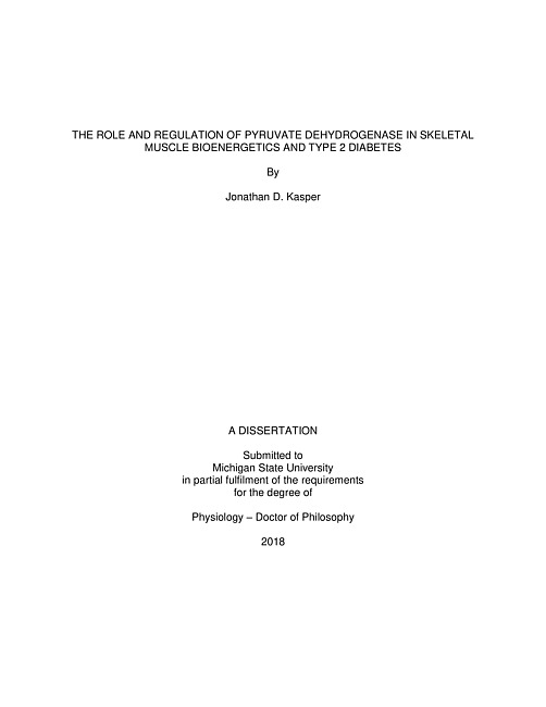 As of 2015 over 30 million people had type 2 diabetes with another 84.1 million with prediabetes comprising 350303% of the adult US population. The hallmark of this disease is characterized by impaired glycemic control exhibiting elevations in blood glucose in the post-absorptive and absorptive states. Skeletal muscle comprises 400303% of total body mass and is an early site of insulin resistance. Skeletal muscle contributes to whole body glycemic control through mitochondrial glucose oxidation which is catalyzed and regulated by pyruvate dehydrogenase (PDH). Early type 1 diabetic rodent studies implicated reduced muscle PDH activity in the etiology of hyperglycemia but current human studies indicate either normal or elevated post-absorptive glucose oxidation in resting or contracting skeletal muscle. There is a surprising lack of studies and detailed understanding of the regulation of PDH activity in vivo, especially regarding type 2 diabetes. This dissertation will determine the mechanisms that regulate skeletal muscle PDH activation in vivo, the effects of altered PDH activation on muscle function and finally will quantify PDH activity in a rodent model of type 2 diabetes.