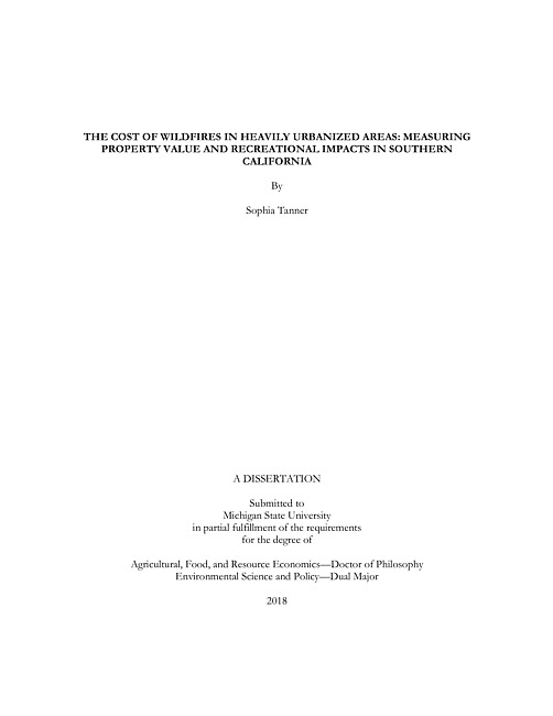 The cost of wildfires in heavily urbanized areas : measuring property value and recreational impacts in Southern California