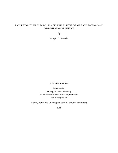 Faculty on the research track : expressions of job satisfaction and organizational justice