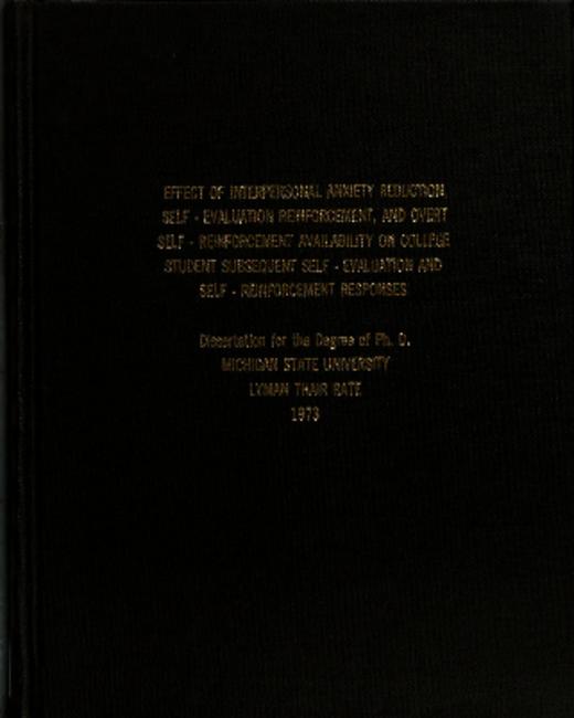 Effect of interpersonal anxiety reduction, self-evaluation reinforcement, and overt self-reinforcement availability on college student subsequent self-evaluation and self-reinforcement responses