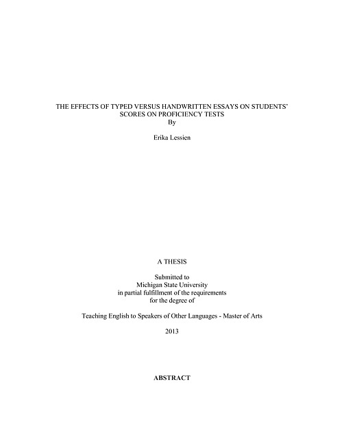 The effects of typed versus handwritten essays on students' scores on proficiency tests