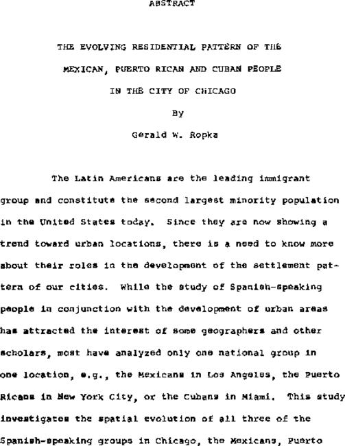 The evolving residential pattern of the Mexican, Puerto Rican and Cuban population in the city of Chicago