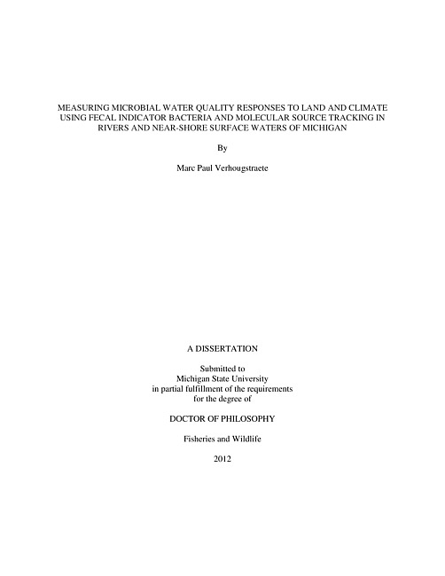 Measuring microbial water quality responses to land and climate using fecal indicator bacteria and molecular source tracking in rivers and near-shore surface waters of Michigan