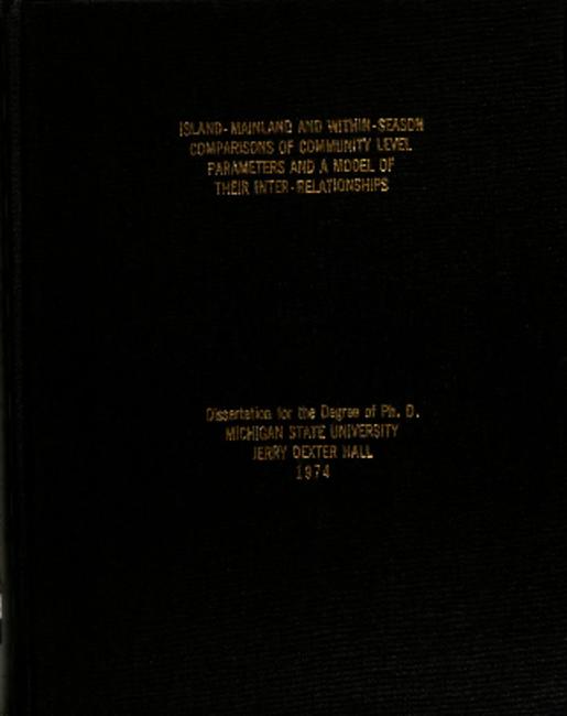 Island-mainland and within-season comparisons of community level parameters and a model of their inter-relationships