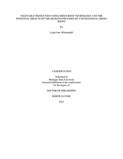 Vegetable production using green roof technology and the potential impacts on the benefits provided by conventional green roofs