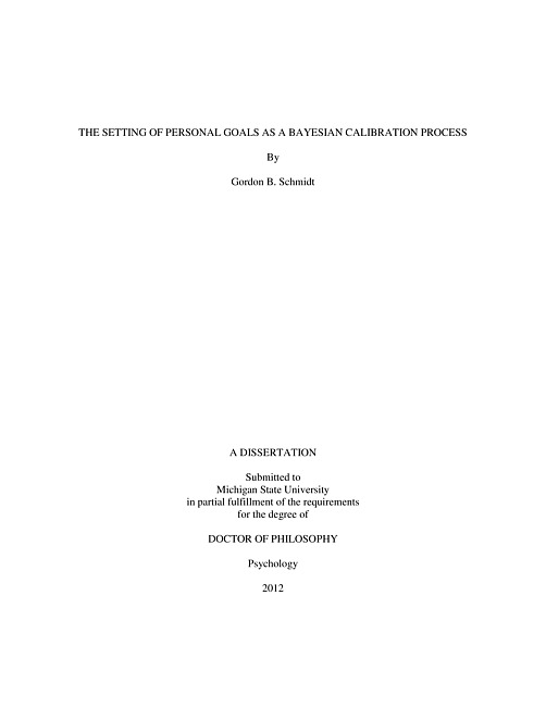 While the positive impact of goals on task performance is well documented (Locke & Latham, 1990), there still is little understanding of the way in which people set and revise personal goals over time. Research has found that people change their personal goals over time, often to reduce performance-goal discrepancies (Campion & Lord, 1983; Donovan & Williams, 2003; Vancouver et al, 2001) although how such goal revision proceeds over time has not been clearly conceptualized. This dissertation proposes that personal goal revision proceeds through the process of goal calibration by the mechanism of Bayesian updating. People use performance and performance variance information to better estimate future performance and revise their current personal goals to reflect such information. Bayesian updating has been shown to be a process that influences how people make estimations of a number of factors (Griffiths & Tenenbaum, 2006) and thus should have a similar impact on personal goals. This was tested with 155 college students performing a temporary worker hiring task and setting task related personal goals. Support was found for a goal calibration model better fitting actual participant personal goals compared to a Goal Setting Model, although unexpectedly a constant growth model offered the best fit. The reasons for these results and implications for future work on personal goal setting is discussed.