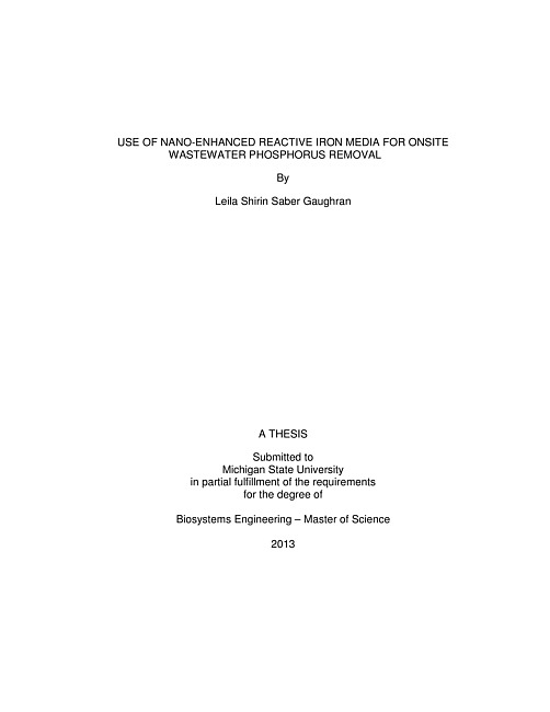 Phosphorus is an element which exists naturally in the environment and is required for plant and animal life. Excess of phosphorus can cause significant environmental and health problems, namely eutrophication and the growth of toxic algal blooms in lakes and streams. Onsite wastewater treatment systems are a significant source of environmental phosphorus loading. This laboratory column study explored the use of a nano-enhanced reactive iron media for use in removing phosphorus in onsite wastewater treatment. Actual secondary treated wastewater was used. The capacity was determined to be between 29 and 47 mg P/g, considerably higher than other media that was examined using actual wastewater in a continuously operated reactor. The shape of the effluent removal curve indicates that the likely mechanism of removal is adsorption controlled by the equilibrium complexation of phosphorus with the nano-iron crystals attached the surface of the media. This research could not demonstrate statistically whether empty bed contact time or hydraulic loading were the most important parameters in determining the removal efficiency. As well, it was determined that a wastewater that supports the establishment of a biofilm produces spikes of effluent total phosphorus.