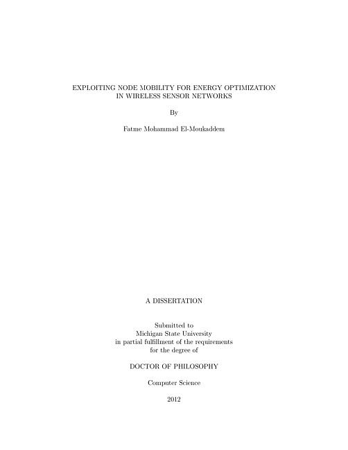 Wireless Sensor Networks (WSNs) have become increasingly available for data-intensive applications such as micro-climate monitoring, precision agriculture, and audio/video surveillance. A key challenge faced by data-intensive WSNs is to transmit the sheer amount of data generated within an application's lifetime to the base station despite the fact that sensor nodes have limited power supplies such as batteries or small solar panels. The availability of numerous low-cost robotic units (e.g. Robomote and Khepera) has made it possible to construct sensor networks consisting of mobile sensor nodes. It has been shown that the controlled mobility offered by mobile sensors can be exploited to improve the energy efficiency of a network.In this thesis, we propose schemes that use mobile sensor nodes to reduce the energy consumption of data-intensive WSNs. Our approaches differ from previous work in two main aspects. First, our approaches do not require complex motion planning of mobile nodes, and hence can be implemented on a number of low-cost mobile sensor platforms. Second, we integrate the energy consumption due to both mobility and wireless communications into a holistic optimization framework.We consider three problems arising from the limited energy in the sensor nodes. In the first problem, the network consists of mostly static nodes and contains only a few mobile nodes. In the second and third problems, we assume essentially that all nodes in the WSN are mobile. We first study a new problem called max-data mobile relay configuration (MMRC) that finds the positions of a set of mobile sensors, referred to as relays, that maximize the total amount of data gathered by the network during its lifetime. We show that the MMRC problem is surprisingly complex even for a trivial network topology due to the joint consideration of the energy consumption of both wireless communication and mechanical locomotion. We present optimal MMRC algorithms and practical distributed implementations for several important network topologies and applications. Second, we consider the problem of minimizing the total energy consumption of a network. We design an iterative algorithm that improves a given configuration by relocating nodes to new positions. We show that this algorithm converges to the optimal configuration for the given transmission routes. Moreover, we propose an efficient distributed implementation that does not require explicit synchronization. Finally, we consider the problem of maximizing the lifetime of the network. We propose an approach that exploits the mobility of the nodes to balance the energy consumption throughout the network. We develop efficient algorithms for single and multiple round approaches. For all three problems, we evaluate the efficiency of our algorithms through simulations. Our simulation results based on realistic energy models obtained from existing mobile and static sensor platforms show that our approaches significantly improve the network's performance and outperform existing approaches.