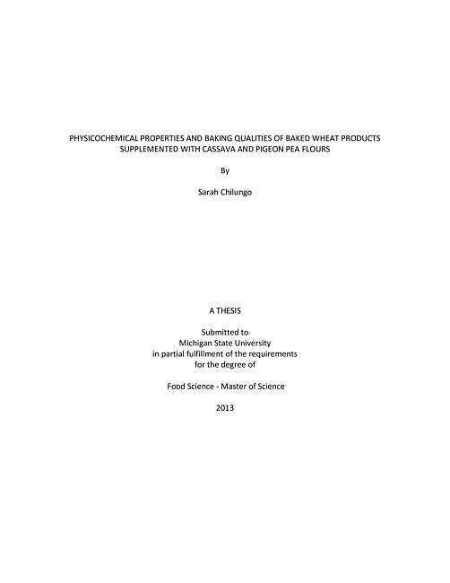 Physicochemical properties and baking qualities of baked wheat products supplemented with cassava and pigeon pea flours